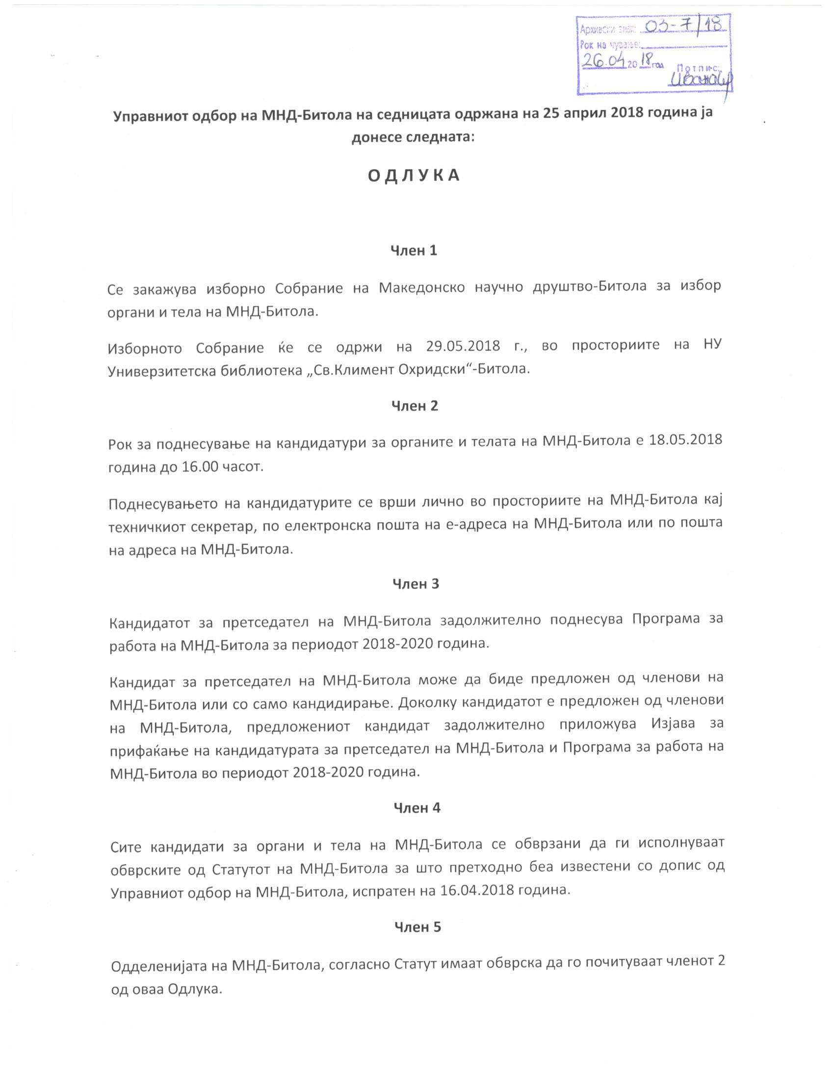 ОДЛУКА ЗА ИЗБОРНО СОБРАНИЕ НА МНД – БИТОЛА Post published:30/04/2018 Post category:Настани Споделете на: Share this content Opens in a new window Opens in a new window Opens in a new window Opens in a new window Opens in a new window Read more articles Previous PostМНД-Битола вклучени во националниот Совет за развој на граѓанскиот сектор Next PostОДЛУКА ЗА ИЗБОРНО СОБРАНИЕ НА МНД – БИТОЛА You Might Also Like Комеморативна седница за Ѓорѓи Сугарев 23/03/2012 МНД дарува книги за Основните училишта во Битола 19/04/2012 Документарен филм „Уметникот од фронтот – Валентин“, проект на МНД-Битола 19/10/2018